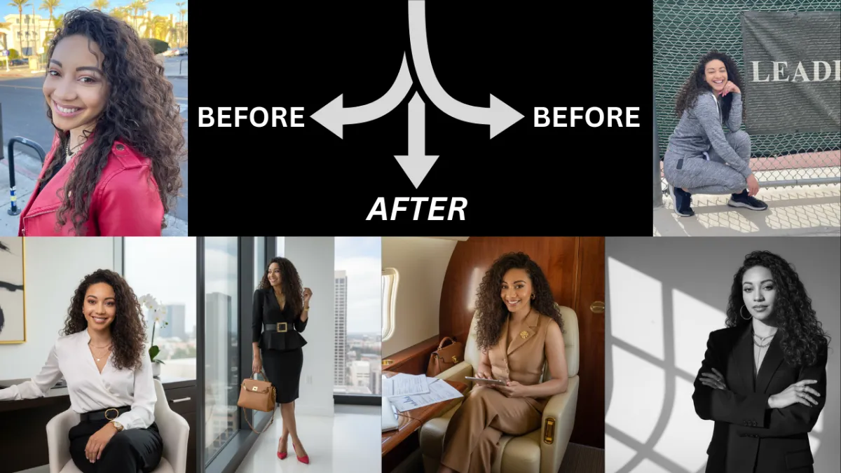 Choose your package, upload a few selfies, and receive a fully curated set of editorial-quality portraits tailored to your personal brand.